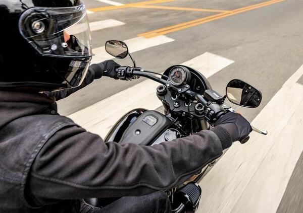 Lo stile dark prevede la finitura Wrinkle Black su motore, coperchio primaria, piastre, supporti parafango posteriore e console del serbatoio; derby cover, filtro dell’aria, coperchi bilancieri inferiori e riser manubrio sono invece in nero lucido. Il manubrio è nero satinato.