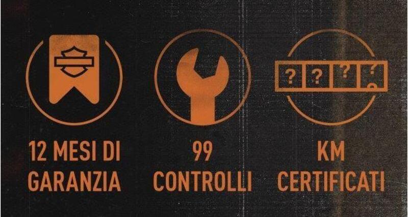 In pratica ogni modello usato messo in vendita dalle concessionarie del marchio americano è sottoposto a 99 controlli effettuati dal personale qualificato della rete ufficiale (comprende un’ampia lista di controlli e verifiche per garantire il rispetto degli standard H-D in meccanica, funzionamento ed estetica), il chilometraggio è certificato e gode di una garanzia di 12 mesi dalla data di acquisto.