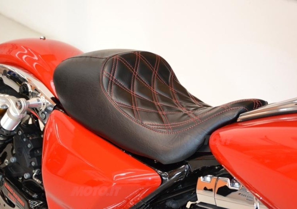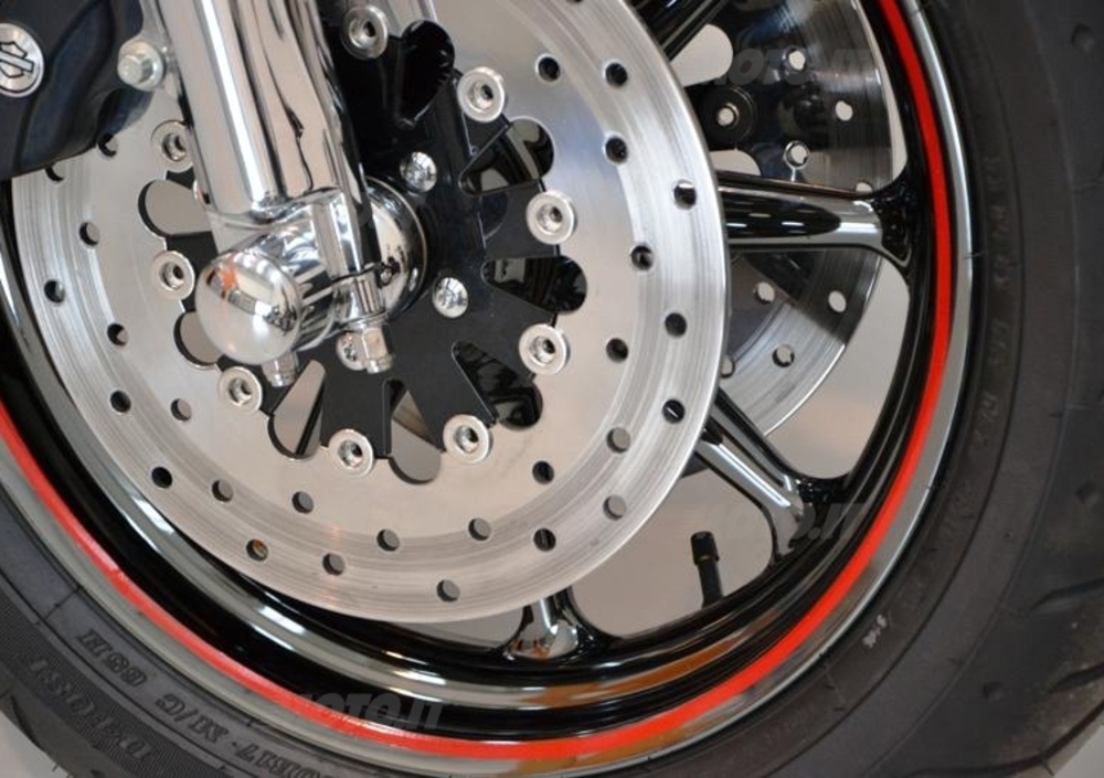 Il lavoro è stato fatto attingendo a piene mani dal ricchissimo calogo di accessori originali H-D con alcune notevoli eccezioni: gli ammortizzatori posteriori Ohlins, lo scarico (in tono con il minimalismo già citato) nonché pedane, sella e fianchetti realizzati artigianalmente.