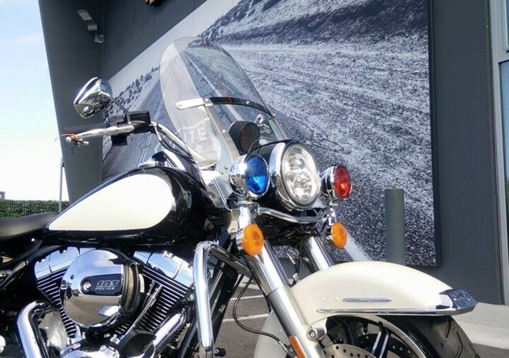 Non stiamo parlando di una colorazione speciale o di un allestimento a tiratura limitata, ma di una motocicletta di produzione destinata originariamente alle forze dell’ordine Americane. Il suo nome esatto è Road King MY 2016 , Fire & Rescue Motorcycles. La Police, oltre ad avere una livrea a nostro parere bellissima, è anche dotata di migliorie e parti speciali che la rendono ancora più preziosa. Senza contare poi che è la prima volta che in Italia vengono destinate al pubblico queste motociclette, e numericamente sono pochissime. Nello speciale allestimento sono compresi:
