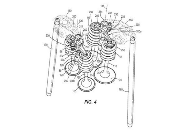Guardando oltre il 2020 (per cui Harley-Davidson ha già presentato tutta la gamma, che si completa con Low Rider S, Road Glide e Tri Glide) appare infatti all’orizzonte un’importante aggiornamento della piattaforma motoristica che attualmente spinge tutte le H-D “grosse”: un brevetto depositato lo scorso febbraio ma reso pubblico solo in questi giorni mostra infatti un nuovo sistema di distribuzione plurivalvole per l’attuale bicilindrico ad aste e bilancieri che renderebbe il V-Twin di Milwaukee capace di regimi di rotazione sostanzialmente più elevati.