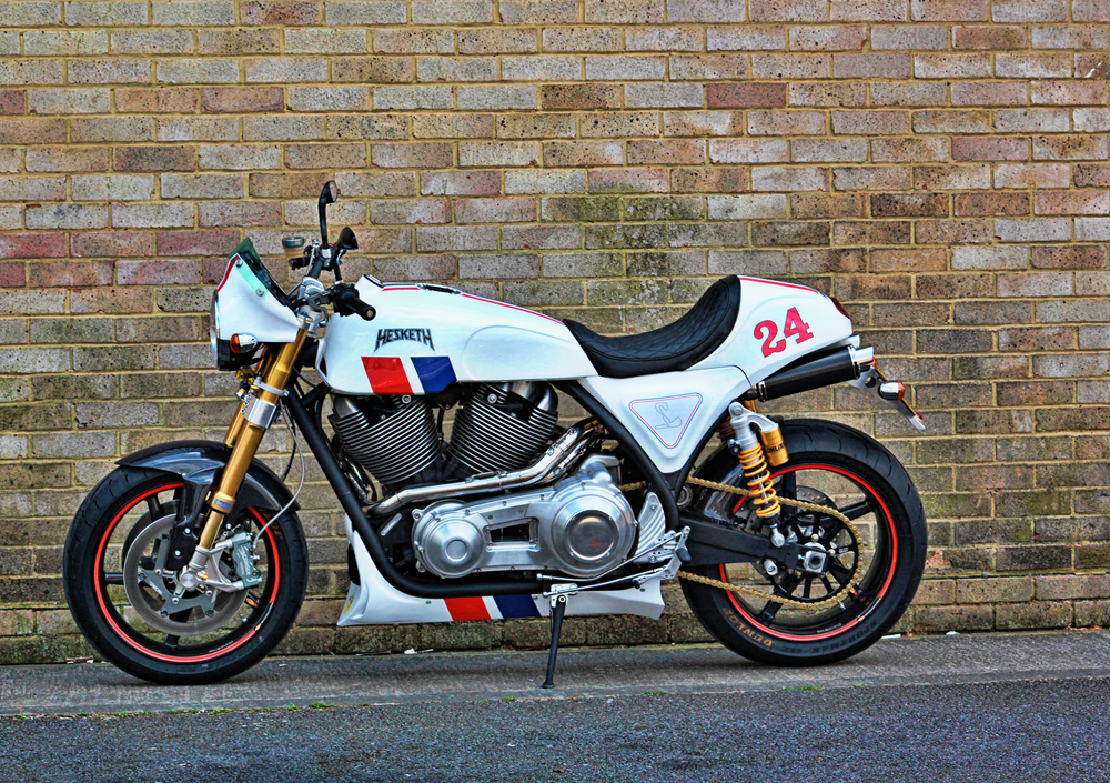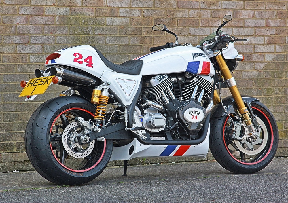 La base tecnica è il bicilindrico a V stretta S&S (56°) X-Wedge da 1950 cc – la stessa unità che spinge le Confederate e la nostrana CR&S Duu – in tre diverse declinazioni di potenza su richiesta del cliente, ottenute con preparazioni affidate a Harris Performance. La ciclistica è invece realizzata interamente da Hesketh utilizzando componenti di alto livello (Öhlins per le sospensioni, Beringer per i freni) e rivolgendosi ad artigiani del mondo F1 (la sella in nappa italiana è prodotta da d:class, fornitore McLaren) per ottenere un prodotto all’altezza del marchio.