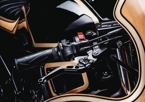 Il risultato è sicuramente di grande effetto, e viene completato da una sella in pelle fatta a mano, diversi particolari prodotti da Rizoma e un inedito faro anteriore a LED prelevato da una Jeep. A dimostrazione peraltro di come George non abbia gli scrupoli da noi paventati in apertura, e che quindi utilizzi la sua Hommage su strada, segnaliamo anche l'arrivo di cartucce forcella e monoammortizzatore posteriore Öhlins, filtri aria K&N, scarico XRace e gommatura Pirelli Diablo SuperCorsa.