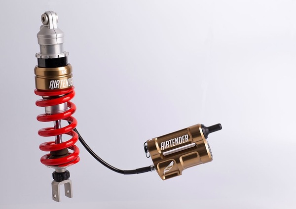 Il brevetto AirTender, di cui vi abbiamo parlato nel dettaglio ai tempi dello scorso EICMA 2018, è coperto da ben due brevetti internazionali: l'idea è quella di montare, al posto della molla elicoidale standard, un sistema che pone in serie una molla elicoidale - più corta e rigida dell’originale - e una molla a gas dotata di un sistema oleodinamico, che permette di regolarla e controllarne gli spostamenti, separando le funzioni della sospensione e riducendone i compromessi in termini di taratura, sintetizzando quindi le esigenze di rigidità per la coerenza dell'assetto e la scorrevolezza sulle piccole asperità.