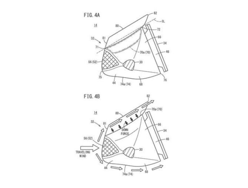 Come avevamo infatti ipotizzato nel pezzo originale (che trovate qui a seguire) infatti, in Casa Honda non si stanno limitando a lavorare sugli specchietti - che dovrebbero avere funzione deportante - ma ci sono novità ancora più interessanti poco più sotto, sulle fiancate della carenatura, dove un nuovo brevetto colloca addirittura una soluzione aerodinamica attiva.