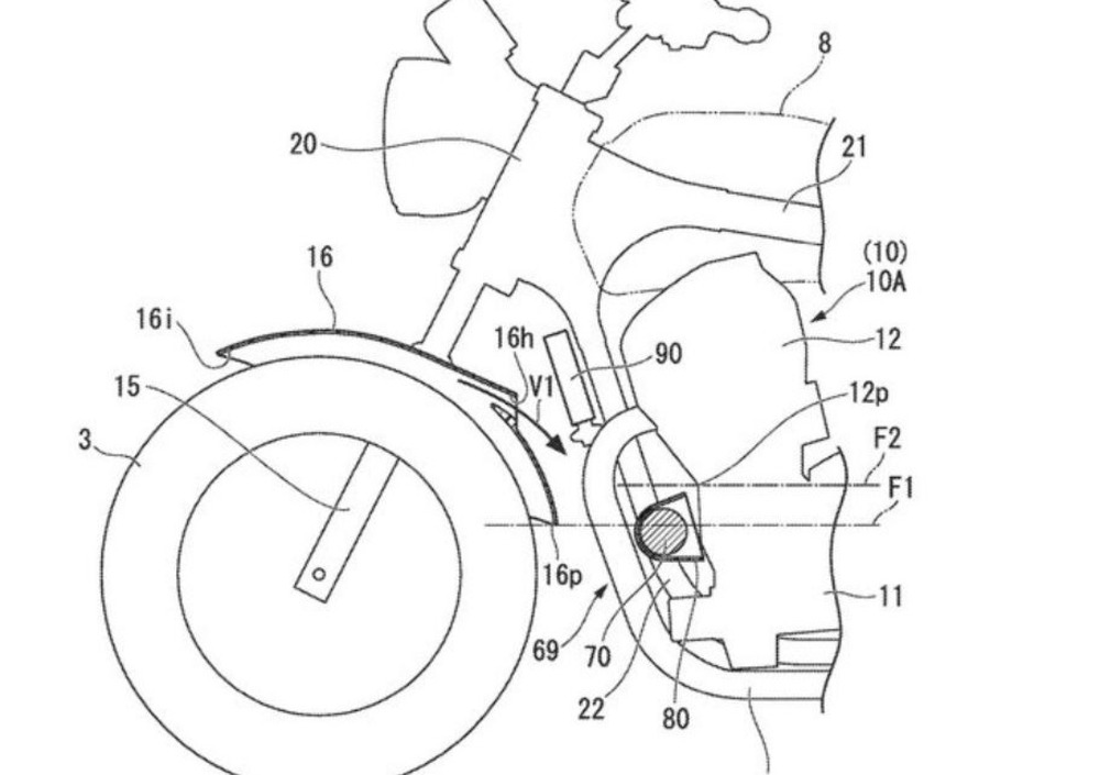 E’ possibile che Honda abbia sviluppato ulteriormente il circuito lubrificante nella funzione di asportazione del calore, e da quello che i disegni di brevetto mostrano c’è stata attenzione nel canalizzare l’aria dal parafango anteriore ai cilindri 2 e 3, quelli centrali che soffrono di maggiore instabilità termica.
