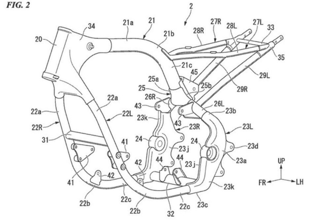 I colleghi inglesi di bikesocial hanno pubblicato alcuni disegni di brevetto Honda. Da quello che si evince esaminandoli, si tratterebbe di una stradale a quattro cilindri assimilabile all’attuale CB1100, ma evoluta nel motore quanto nel telaio.