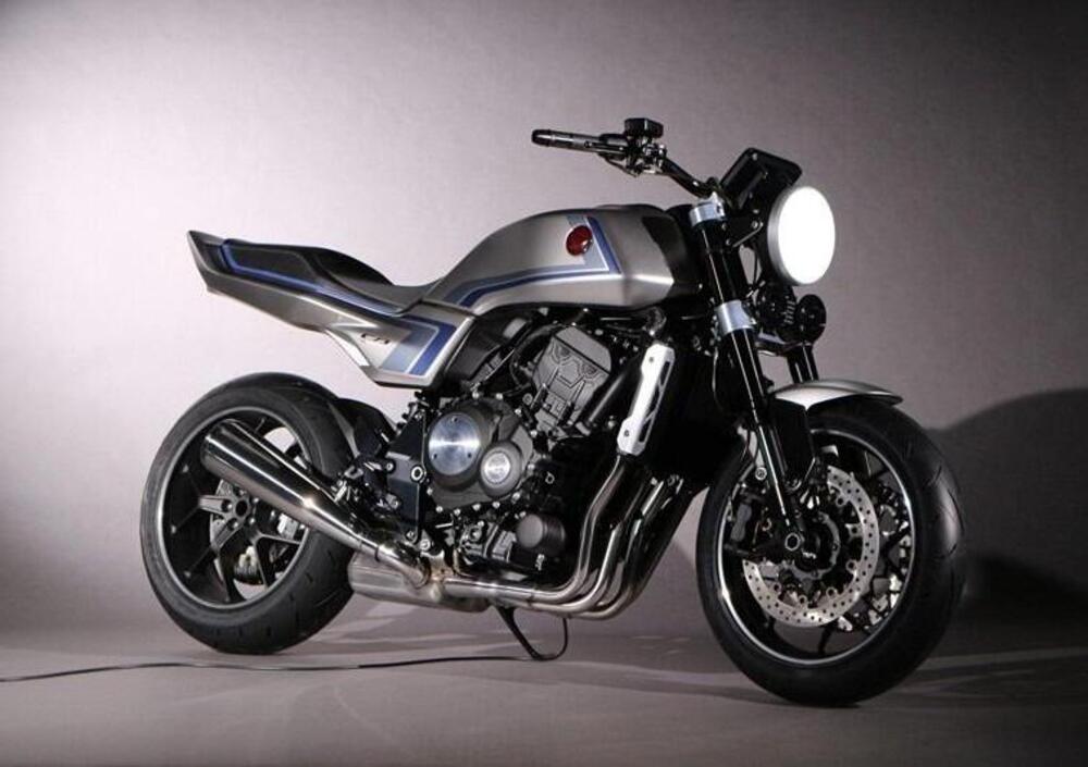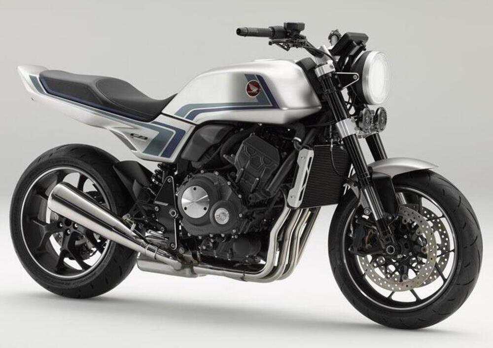 Allora la 900 era considerata una vera sportiva, aveva il raffreddamento ad aria ed era accreditata di 95 cavalli a 9.000 giri. Il concept CB-F è realizzato sulla base tecnica della Neo Sport Café CB1000R, con il suo motore da 145 cavalli e il forcellone monobraccio.