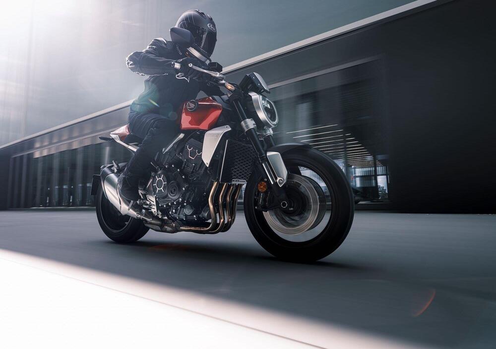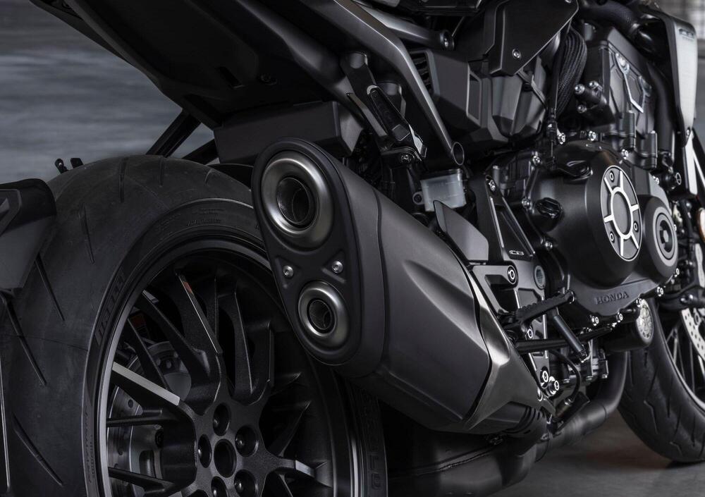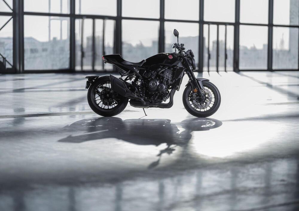 La verniciatura in Deep Graphite Black adorna il serbatoio carburante e la cover monoposto. Inoltre, come sulla precedente Plus, il quickshifter è montato di serie. In più punti, il logo “CB” lavorato rifinisce il tutto.