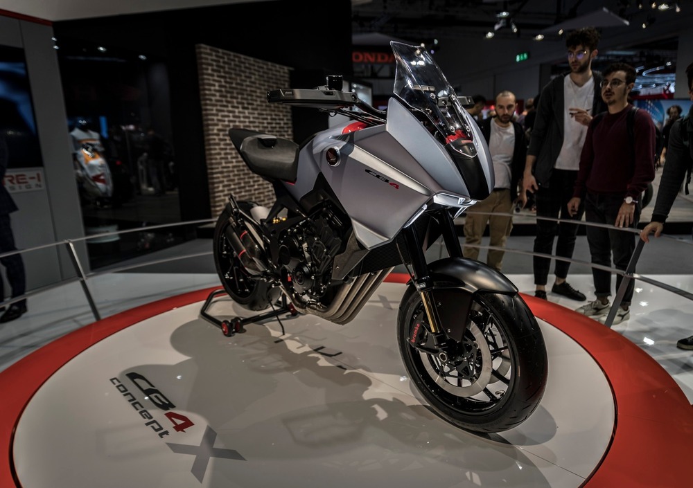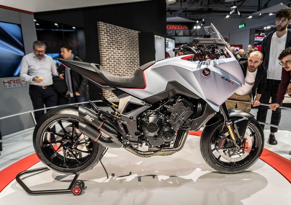 A EICMA dello scorso novembre la CB4X ha fatto bella mostra di sé esposta con risalto allo stand Honda. Disegnata da Valerio Aiello della Honda R&D di Roma - fra le altre, sono sue anche la Neo Sport Cafè CB1000R di serie e la bellissima CB4 Interceptor del 2017- la CB4X è un concept che mescola elementi sportivi con quelli moderatamente touring: una brillante crossover a quattro cilindri sviluppata attorno al motore della CBR 650, che andrebbe a colmare uno spazio nel listino Honda.