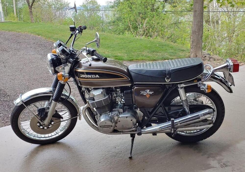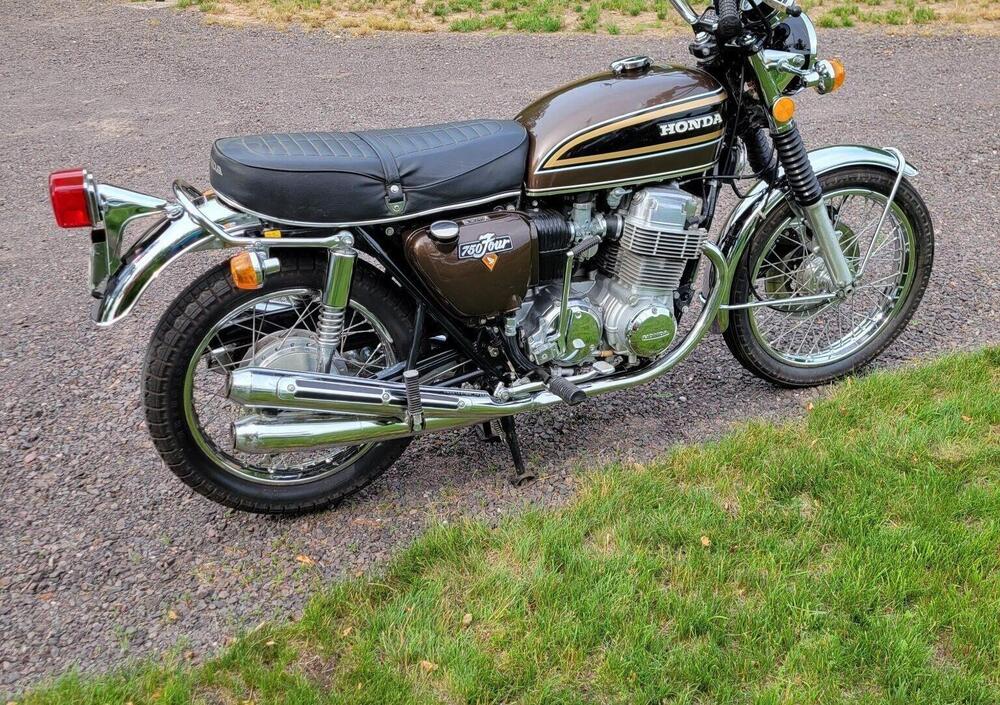 La CB750 K3, invece, ha colorazione marrone con fascia nera sul serbatoio.