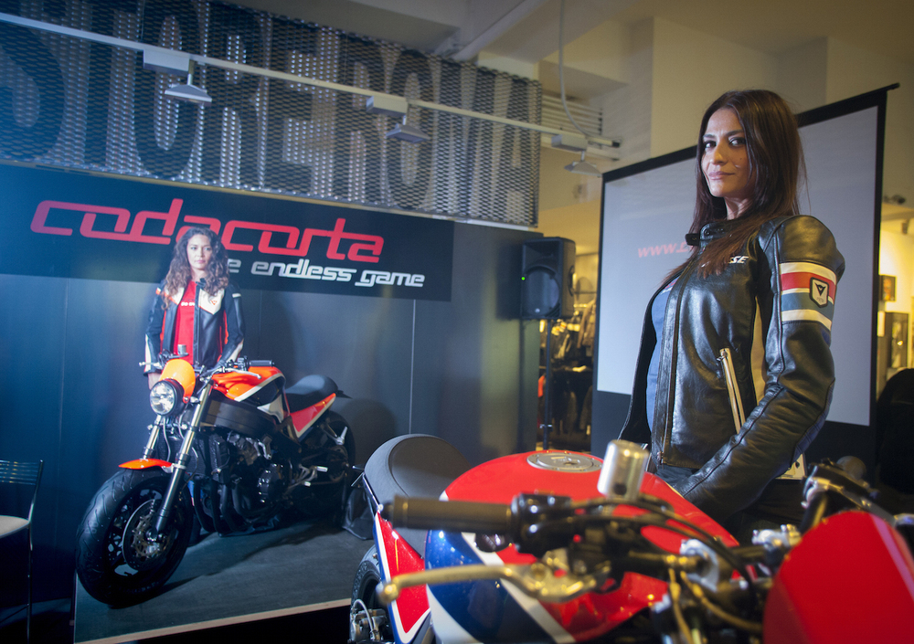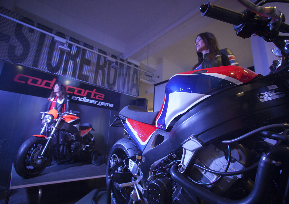 Svelata dopo una lunga attesa al D-Store di Roma, Codacorta è una moto di classe, ma che volendo può diventare aggressiva e rabbiosa, quando addirittura non cattiva. In omaggio alla Honda da cui deriva, l’abbiamo ammirata nella classica livrea tricolore che identifica il reparto corse di Tokyo; ma molto bella è anche la seconda grafica mostrata, in bianco-nero e rosso flou, con una speciale vernice dai riflessi molto intensi.
