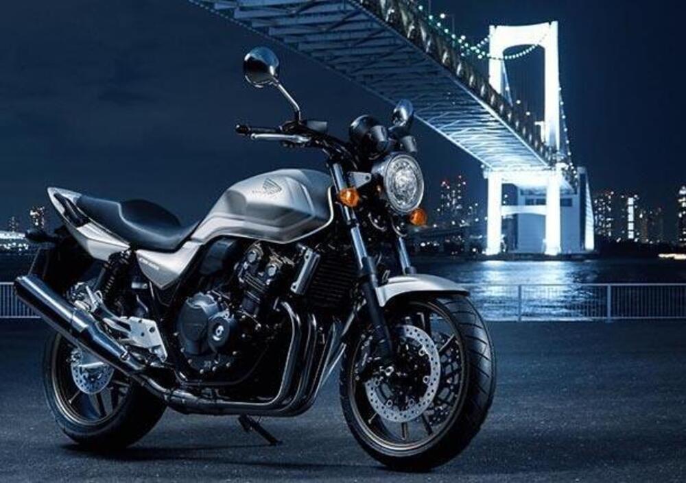 Honda ha mantenuto in produzione la sua CB 400 Super Four, e nello scorso mese di marzo ha realizzato una serie limitata di questo modello (che trovate qui sotto). Una nuova colorazione in argento metallizzato, che ricorda molto quella del Concept CB-F presentato subito dopo, dai forti richiami anni Ottanta.