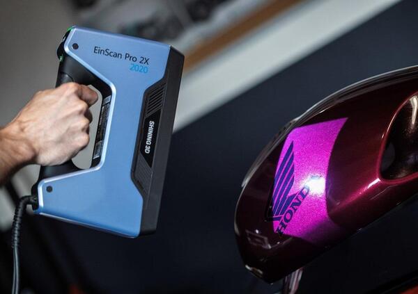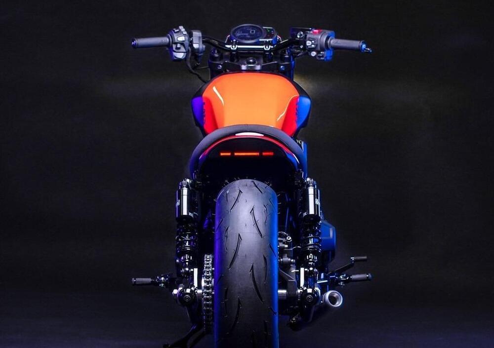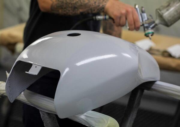 Le nuove sovrastrutture partono dalla scannerizzazione in 3D della moto e consistono nel nuovo serbatoio personalizzato costruito in poliestere misto a carbonio, nel corto codino coprisella con luci a LED integrate e nella sella in alcantara.