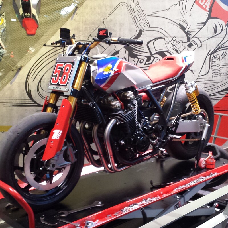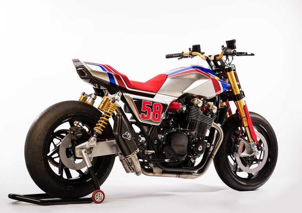 La CB1100TR Concept è un esercizio di stile sulla base della roadster CB1100. E’ ispirata al mondo del flat track con una impostazione meccanica e ciclistica racing. Il numero 58 è stato scelto dal centro R&D italiano in omaggio a Marco Simoncelli.