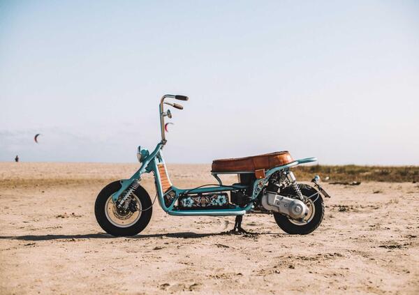 Anche la seconda special si deve al team di Motocicli Audaci: è il chopper BARBARA, in stile anni Cinquanta, costruito sulla base del famoso scooter Honda di fine anni Ottanta, il CN250.