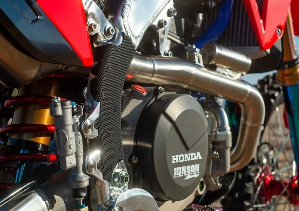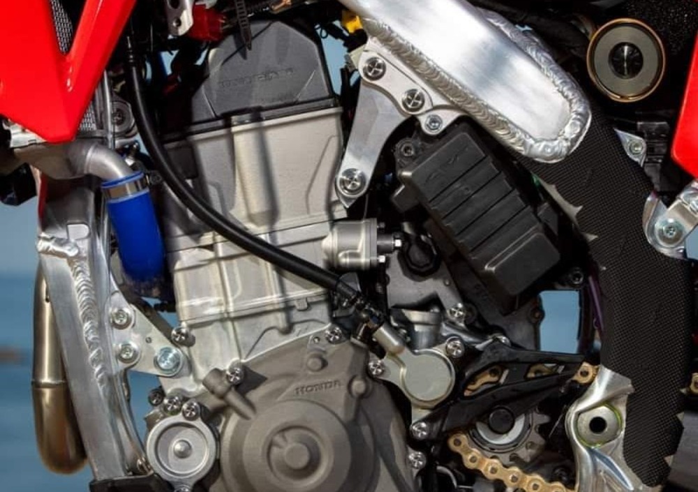 L'avviamento è solo elettrico, ci sono le mappe e il launch control per la partenza. La testa è sempre del tipo monoalbero Unicam. Sulla moto di Gajser compare anche il comando idraulico della frizione, che però c'era anche sulla moto 2019 dello sloveno, salvo non essere poi adottato sulla CRF 450R di serie del 2020.