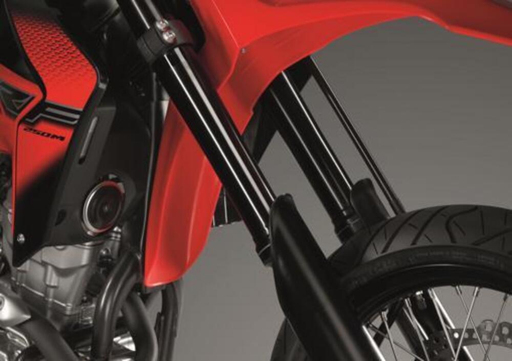 Forse ce l'aspettavamo, forse no, fatto sta che questa CRF250M Supermotard (o Supermoto, per dirla più correttamente all'anglofona) che Honda ci propone partendo dalla base della CRF250L appare particolarmente riuscita sia tecnicamente che dal punto di vista dell'estetica. Fattore importante per una moto che, come specifica la stessa Honda, è concepita per essere sfruttata anche in città da chi desidera distinguersi un po' dai mezzi un po' troppo urban. Un mezzo accessibile che possa avvicinare al motociclismo i meno esperti ma risultare allo stesso tempo accattivante per i più esperti che desiderano un mezzo agile, divertente e allo stesso tempo pratico.