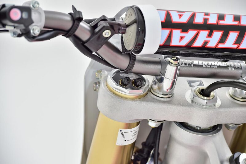 CRF450R 2016 gli aggiornamenti sono incentrati sulle sospensioni e sulle modifiche alla geometria dello sterzo – sempre messi a punto e realizzati grazie all'esperienza maturata sul campo dal Team HRC.