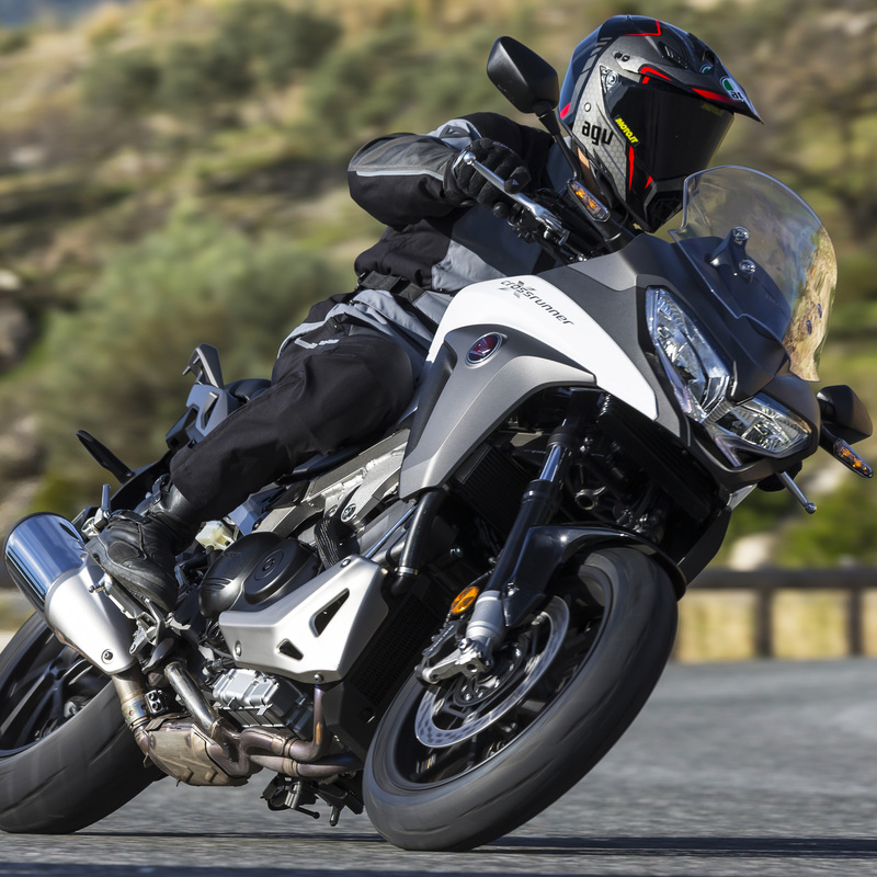 La versione 2015 della Crossrunner: giunta al suo quarto anno di vita, la crossover di Tokyo viene rivista mutuando diversi degli aggiornamenti di cui è stata oggetto nella scorsa stagione la VFR-F da cui deriva la base tecnica – quel propulsore V4 a 90° bialbero a 16 valvole (purtroppo privato della prestigiosa, ma rumorosa e costosa da produrre, distribuzione a cascata d’ingranaggi che graziava la VFR prima dell’avvento del VTEC) ora rinvigorito un po’ a tutti i regimi e più potente nel valore massimo, dichiarato ora in 78 kW (106 cavalli) a 10.250 giri.