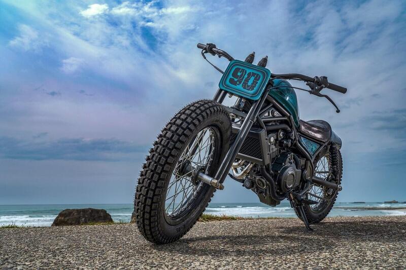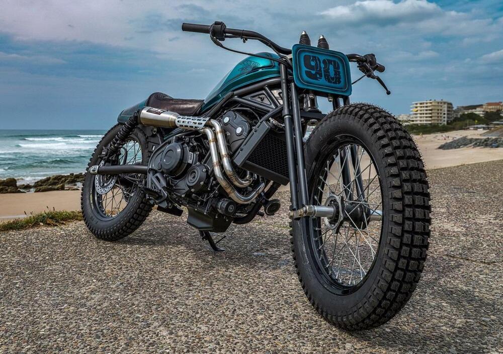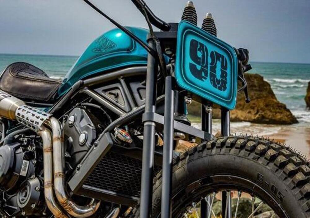 Maanboard si fa notare per la bella forcella springer che sorregge una ruota a raggi da 19 pollici (come la posteriore) e che in parte ha il merito di aver indirizzato la special verso il filone delle sand racers, per l’impianto di scarico in acciaio realizzato in proprio dotato di un terminale SC-Project. La verniciatura in blu con tema a foglia dorata impreziosisce il serbatoio e il codino, con i nuovi risers del manubrio e la nuova sella in pelle a completare il look.