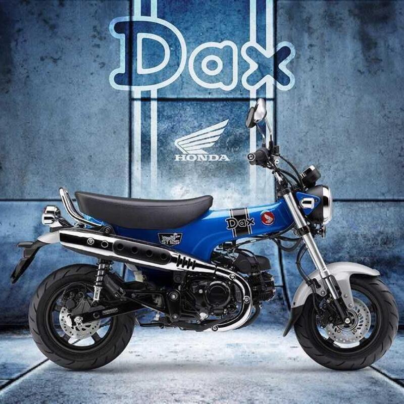 Il Dax continua a essere incentrato su un telaio monoscocca a vista che funge anche da serbatoio del carburante, con una forcella a steli rovesciati da 31 mm (escursione di 100 mm) e una coppia di ammortizzatori posteriori (corsa ruota di 120 mm). Sui cerchi a 12 pollici troviamo panciuti pneumatici (120/70 e 1320/70) e due reni a disco con ABS monocanale nelle dimensioni 220 mm anteriore e 190 mm posteriore. Le dimensioni sono contenute: interasse di 1.020 mm e sella alta appena 775 mm da terra, mentre il peso con il pieno di benzina (3,8 litri) è dichiarato in 107 kg.