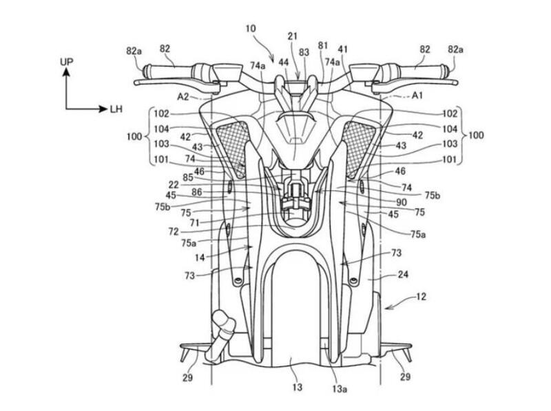 Lo stesso telaio che appare nei disegni di brevetto appare decisamente peculiare, perlomeno per una naked Hoda. Si evince infatti una parte superiore imbullonata al propulsore (che quindi è elemento stressato della ciclistica) e una parte posteriore incernieriata sul cambio dalla quale si diparte un forcellone monobraccio. Come sempre, la registrazione di questi brevetti non significa l'immediata produzione di modelli con queste caratteristiche, quanto l'opportunità per la Casa di esplorare nuove strade che possono - al momento opportuno - portare al debutto moto con ciclistiche non convenzionali.