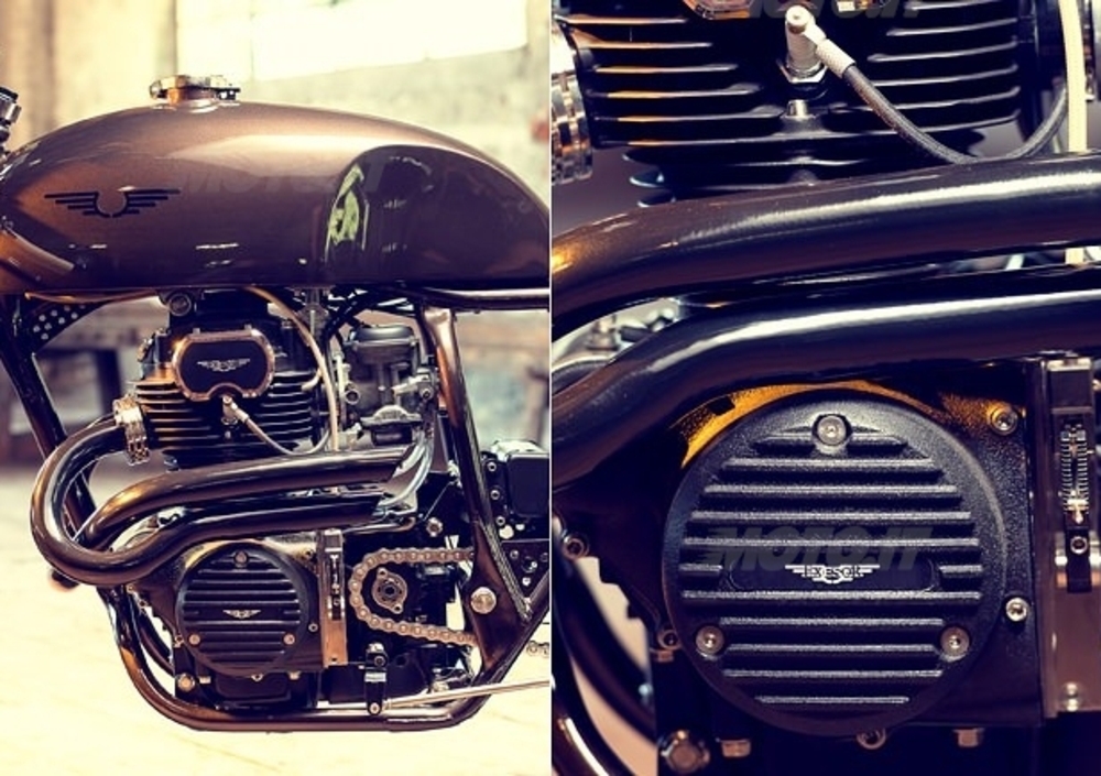 Questa CB400 - realizzata partendo da diversi esemplari della famiglia Honda "due in linea" - è invece un perfetto esempio di come si possa, spendendo davvero i metaforici due soldi, creare un mezzo unico, originale e di gusto impeccabile. Sembra quasi di respirare l'aria dei velodromi, delle passerelle in legno - sarà la tinta caffé, saranno le linee curve, ma questa CB trasuda un'eleganza retrò, quasi stile Liberty. E la totale assenza di cromature è una vera boccata d'aria in un mondo, quello delle special, che il costante aumento di proposte sta rendendo sempre più piatto ed autoreferenziale.