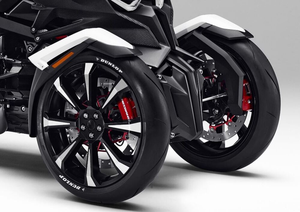 Questa volta si tratta però di un veicolo con due ruote anteriori basculanti e di grande diametro, mentre la motorizzazione, che sfrutterebbe una trasmissione semi automatica, verte su un quattro cilindri boxer termico (da qui il richiamo nel nome alla celebre Goldwing) abbinato a due motori elettrici per fornire una coppia elevata e quindi incrementare le doti di accelerazione. Si tratta di un concept da Salone, ma in ogni caso conferma l'interesse di Honda verso questa categoria di veicoli e verso la trazione ibrida.