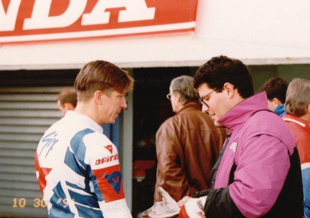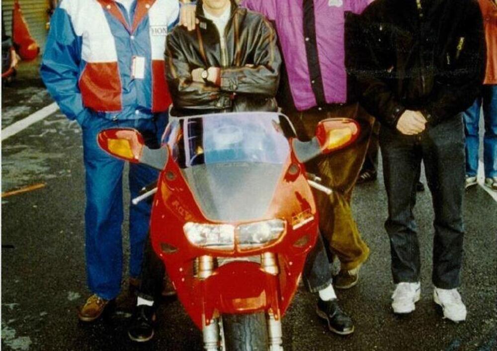 Sono sicuro di quella data perché è stampigliata in un paio foto che mi sono ricordato di avere da qualche parte e che vi condivido qui sotto. Ci sono Silvio Manicardi, all'epoca ai vertici della Honda Europa, Carlo Fiorani, in quegli anni responsabile stampa della filiale italiana, e un altrettanto giovane Giovanni Zamagni che, da vero appassionato, si sciroppò la trasferta soltanto per vedere la NR dal vero.