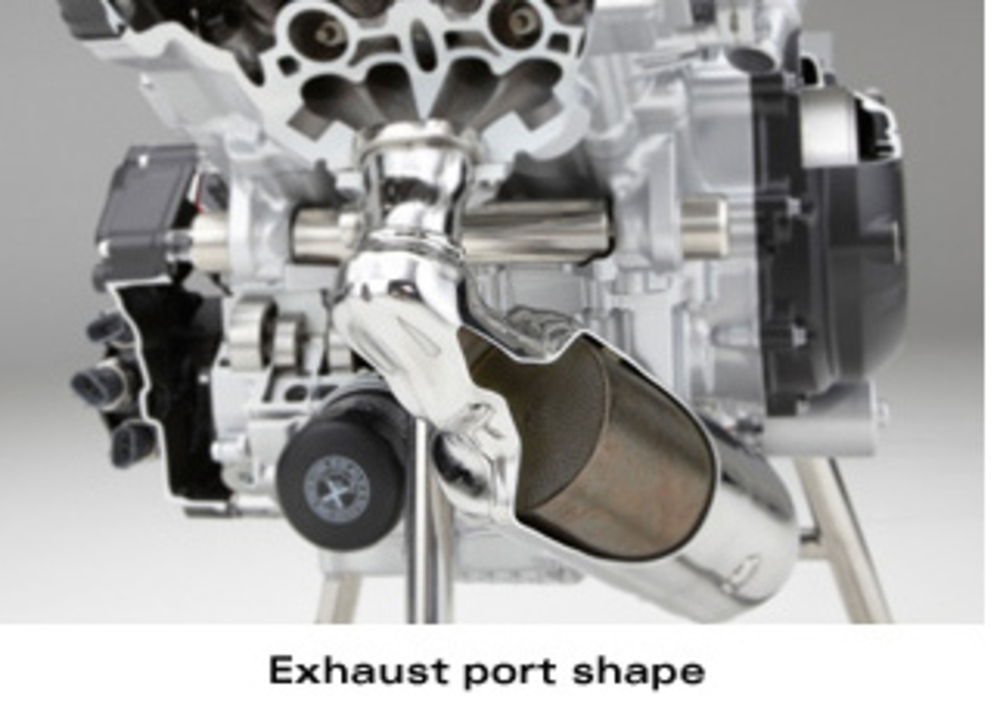 Il nuovo bicilindrico Honda, monoalbero in testa con 4 valvole per cilindro, ha i gruppi termici inclinati in avanti di 62°, è fasato a 270° ed è dotato di contralbero di bilanciamento per la riduzione delle vibrazioni, che aziona anche la pompa dell’olio. L’aspirazione avviente tramite un unico condotto che serve entrambi i cilindri, sdoppiato internamente per consentire al flusso di alimentazione di servire le camere di scoppio in tempi differenti, con l’aiuto di apposite camme d’aspirazione a doppio profilo.