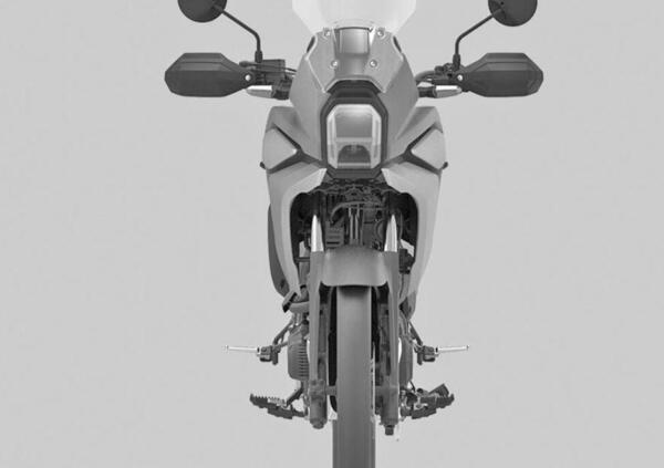 Lo stile prende le mosse dalla Africa Twin 1100, ci sono i paramani sul manubrio e il vetro del cupolino regolabile in altezza, la slitta paramotore e lo scarico alto.
