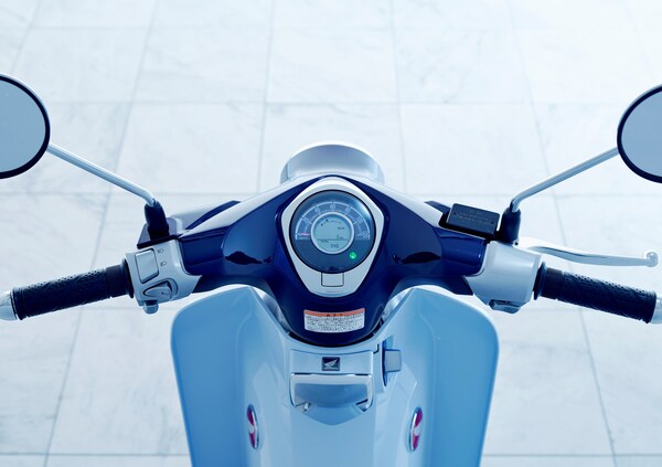 Classico ma non vecchio, il Super Cub C125 ha luci full led, strumentazione LCD e avviamento smart key dotato di immobilizer.