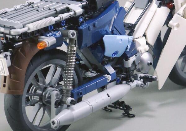 Utilizzando componenti del catalogo Technic, alcuni modificati, Khang ha costruito il suo Cub senza foglio di istruzioni e parti divise nelle bustine di plastica. Il risultato si avvicina per qualità alle realizzazioni fatte con LEGO Creator Expert, come questa Harley-Davidson.