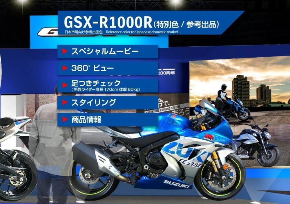 Le novità viste sono state la GSX-R 1000R con nuova livrea MotoGP replica 2020, la nuova colorazione per la Katana 1000 e le due Gixxer 250, naked e sport, dedicate al momento ai soli mercati orientali.