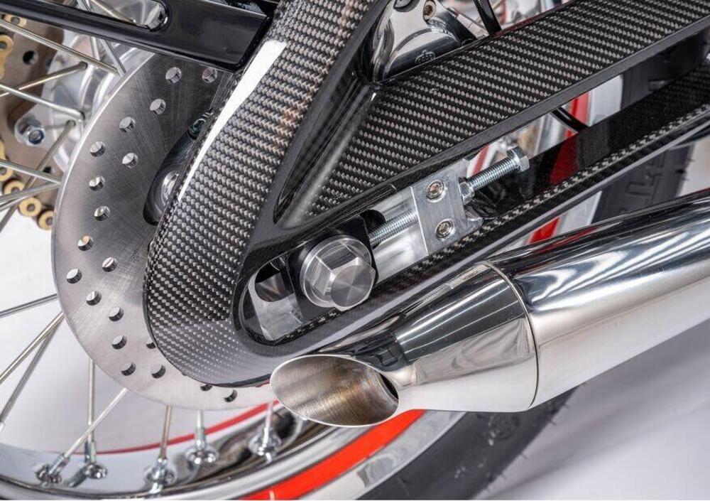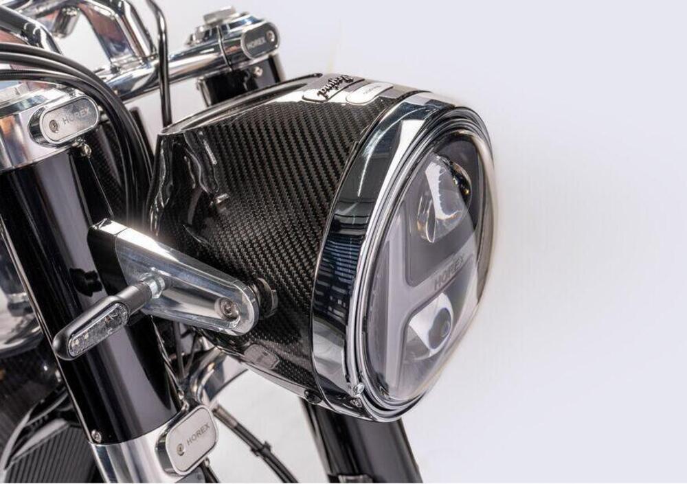 Leggerissimo anche il serbatoio che è stato Il classico serbatoio della benzina è realizzato in lamiera di alluminio. Alla fine, sulla bilancia, la Horex Regina EVO fa segnare 133 chilogrammi (a secco).