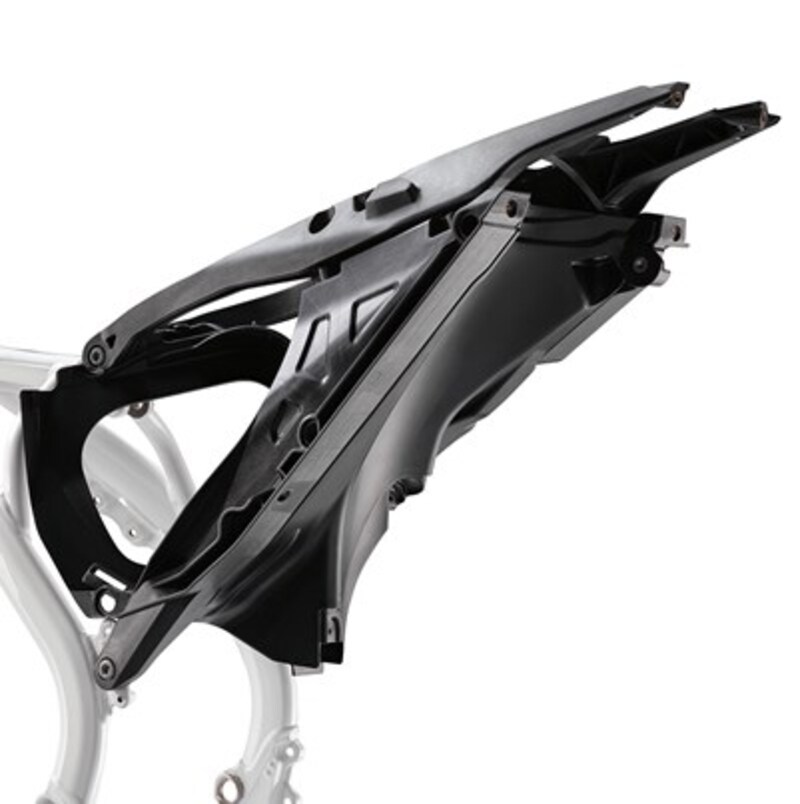 Il telaio è in tubi di acciaio idroformati, tagliati al laser e saldati da robot, mentre il telaietto posteriore in composito è realizzato per il 30% in fibra di carbonio, rendendolo estremamente leggero e particolarmente e robusto. Dalle competizioni deriva la coppia di ruote a raggi Alpina da 16,5 pollici anteriore e da 17 posteriore che calzano pneumatici slick Bridgestone 125/80 R420 e 165/65 R420.