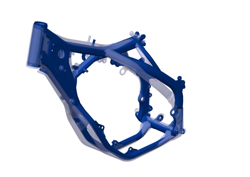 Il nuovo telaio in acciaio al cromo-molibdeno idroformato, tagliato al laser e con saldatura robotizzata, ha rigidezza torsionale e longitudinale riviste. Più leggero e compatto, mira a offrire un miglior feeling e maneggevolezza rispetto al suo predecessore. Accoppiato al nuovo telaietto posteriore in tre pezzi in fibra di carbonio – più leggero di 1 kg rispetto al precedente – e al nuovo forcellone fuso in alluminio, permette di avere una ciclistica con guidabilità e facilità d’uso aumentata. Armonizzate con le caratteristiche del nuovo telaio ci sono nuove piastre lavorate CNC, una forcella WP 4CS rivista nel setting e un ammortizzatore WP completamente nuovo, più corto e alleggerito di 500 grammi. Il tutto, unito alla nuova geometria del leveraggio posteriore, migliora sia l’assorbimento degli urti che il bilanciamento generale del mezzo a garanzia di una trazione migliorata su ogni terreno.