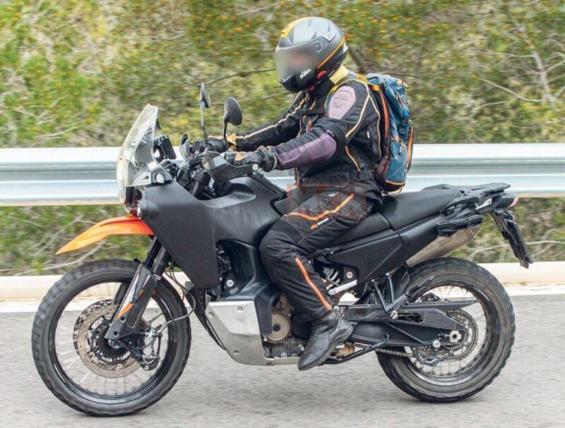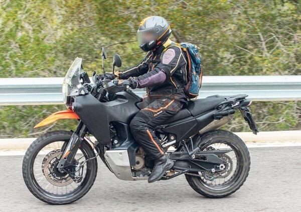 Le nuove foto (pubblicate da MCN) mostrano due esemplari che si differenziano per l'adozione del parafango alto (qui isotto) oppure di quello basso, per due tipi di attacchi delle borse laterali (rigide nel caso della moto con il parafando alto di derivazione KTM e morbide nell'altro) e per un nuovo silenziatore di scarico. Insomma, si sta lavorando sui dettagli.