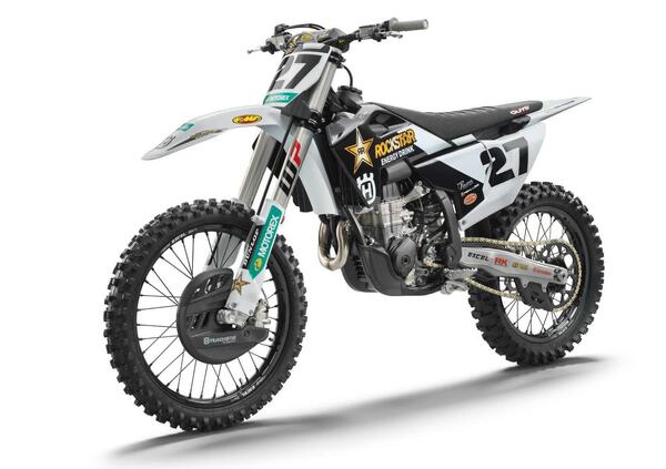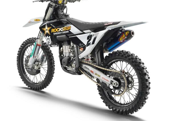 Tra le numerose parti speciali saltano subito all’occhio il silenziatore FMF, le nuove ruote EXCEL e delle rinnovate protezioni per motore e telaio. Anche le grafiche sono state riviste, seguendo sempre però lo stile della Rockstar Energy Husqvarna Factory Racing.
