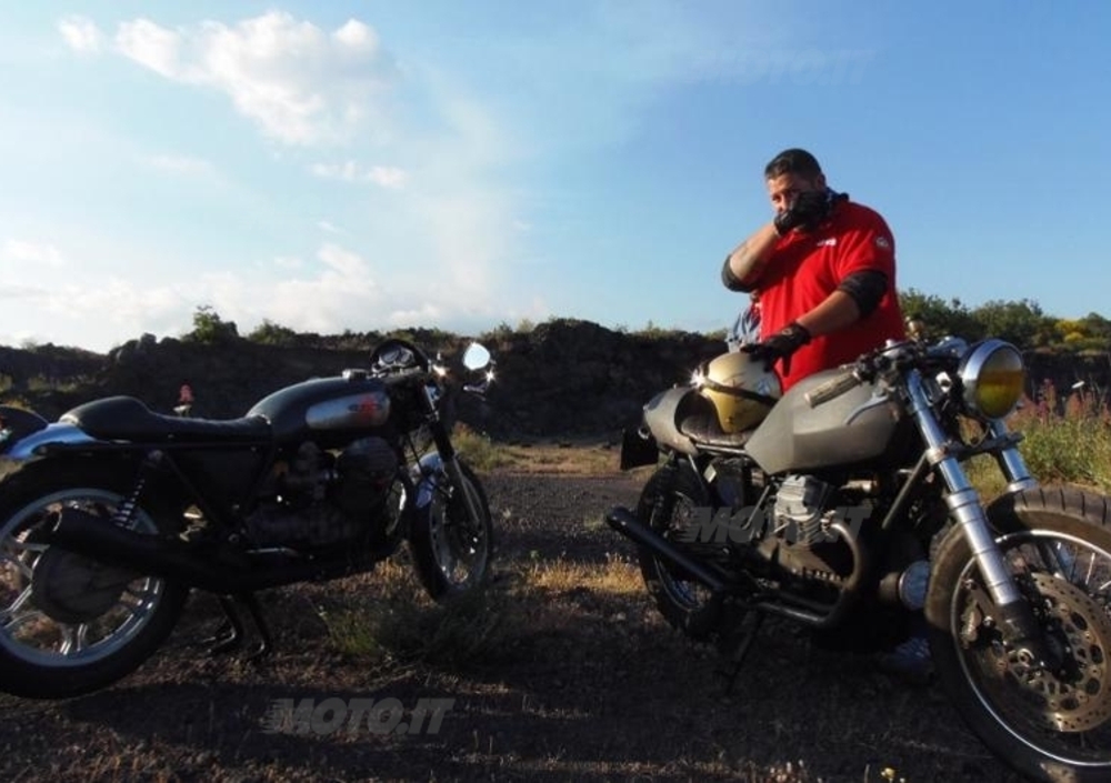 Mi venne da ridere e da abbracciarli; amo la semplicità creativa e la schiettezza nella gente come nelle due ruote e nelle moto di fronte a me tutto era semplice da capire: nulla di complicato e nessun bisogno di qualcuno che ti spiegasse cos’era o come funzionasse, tutto era modificabile, di certo vi era solo il relativo. Toccando le moto di Jack e Rauni mi sentii come di fronte al crollo di ogni bislacca e acrobatica fantasia sessuale indotto dalla conquista della purezza di una donna così vera e passionale da indurmi il più grande appagamento nella semplicità di un amplesso che altri definirebbero banale. O Forse era l’alcol, ma non importa: alla luce del neon alcune splendide Guzzi, vera passione dei due tuner siciliani, brillavano e attendevano di essere completate. Ero ancora alticcio, lo stato confusionale mi rendeva euforico e curioso, Jack e Rauni chiedevano pareri, opinioni, mi mettevano di fronte la loro sterminata esperienza nell’inventarsi una soluzione di tuning estetico e tecnico. Mi mostrarono come un serbatoio di un vecchio Honda Four calza perfettamente il doppia culla di una cafè racer Guzzi teste tonde, mi diedero da reggere un faro all’acetilene e fatto capire che, come disse Rauni, “se ha due ruote si può fare”.