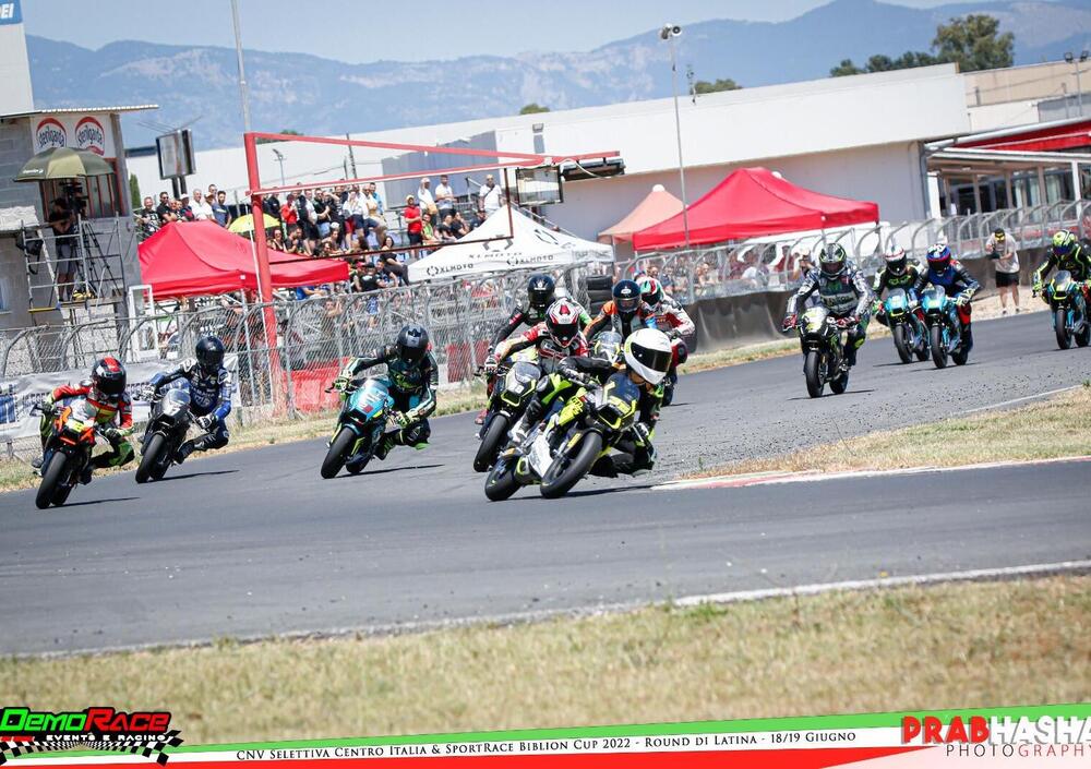 Iniziamo quindi a vedere come si sono svolte le varie gare iniziando dalla SportRace Biblion Cup per la quale le qualifiche si sono svolte nella giornata di sabato ed ad avere la meglio è stato Danilo Paoloni del Team Birba che fa registrare il tempo di 59’’.663’’’ ed è anche l’unico pilota ad abbattere il muro del minuto nelle prove cronometrate. Il pole man parte molto bene e mantiene la testa della gara, dalla terza casella invece Carmine Ruotolo non ha un buono spunto e perde diverse posizioni. Paoloni ed Alessandro Mecco, suo compagno di squadra, creano subito ampio margine con il resto del gruppo; terza posizione invece in solitaria per Massimo Migani del MC Racing team. Alle loro spalle un gruppo di quattro piloti si cimenta nella lotta per la quarta posizione, i quattro rimangono vicinissimi per tutta la prima parte di gara ma non si scambiano le posizioni. Nel corso del quarto giro, Francesco Guiducci del MC Racing team riesce a passare Nicolò Cristiano, del team Milano Racing, e riesce anche ad incrementare un leggero margine. Passata la metà gara Mecco ricuce il distacco che era riuscito ad accumulare Paoloni, non riuscendo però a provare il sorpasso per agguantare la prima posizione, chiudendo in seconda posizione con appena 00''.463''' di distacco. Ruotolo che era scivolato fino all’ultima posizione riesce in una costante rimonta a recuperare ed insidiare Guiducci per la quarta posizione, anche in questo caso un sorpasso che non si concretizzerà lasciando a Guiducci la quarta posizione per appena 00''.147''' di vantaggio. “La gara è andata bene è stata bella è stata combattuta con Alessandro, ho giostrato la situazione durante la gara ma la moto andava molto ben speriamo di fare bene anche in gara2” commenta Paoloni al termine della gara. RISULTATI GARA1 1.Paoloni Danilo 2.Alessandro Mecco 3.Massimo Migani 4.Francesco Guiducci 5.Carmine Ruotolo 6.Nicolò Cristiano 7.Marco De Rold