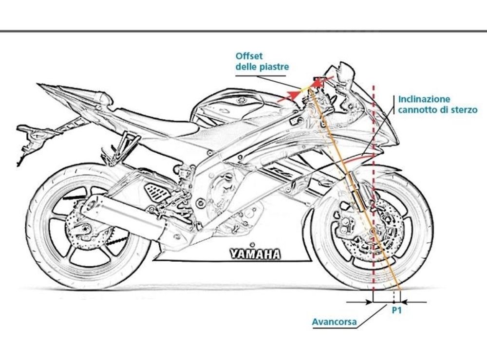 Tra queste misure, tutte importanti, ce ne sono alcune che sono fondamentali e influenzano direttamente il comportamento dinamico della moto: l’inclinazione del cannotto di sterzo, l’offset e l’avancorsa.