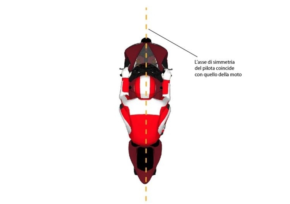 Figura 3 – L’asse longitudinale della moto coincide con quello del pilota in rettilineo, ma anche in curva!