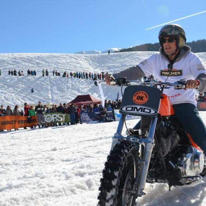 Le Harley e le altre moto, nella formula Hillclimbing, salgono sulla pista innevata per proclamare il miglior scalatore. Diverse gare, alcune miste con la staffetta motociclista+sciatore. Il nostro Maurizio Vector, che ha assistito a due edizioni, scrisse “spettacolo, musica dal vivo, ospiti, una grande organizzazione e un grande divertimento in un ambiente straordinario”".