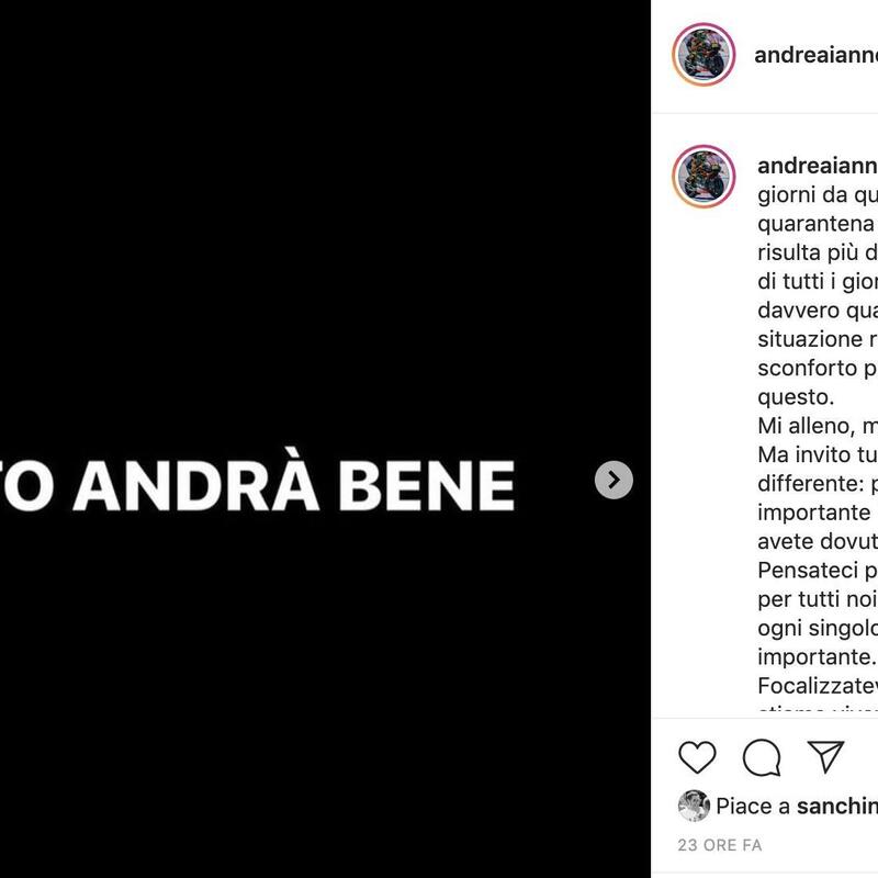 “Quando c’è poca differenza di età - ha fatto eco Biaggi - è facilissimo litigare da bambini. E’ stato così tra me e mia sorella ed oggi vedo che è così tra i miei due figli”. La famiglia, gli aneddoti di vita, le fan che hanno tempestato di cuori ed emoji l’intera diretta e l’esperienza di questa quarantena forzata. “Mi alleno, faccio qualche lavoretto nel mio garage, tra le mie cose, le moto e i kart di una vita - ha detto Iannone - e, la sera, vedo qualche film o, avendo esaurito le serie di Netflix, mi cimento in un gioco di moto, Ride, con gli amici online. A proposito, oggi c’è stata la virtual race e ha vinto Alex Marquez”.