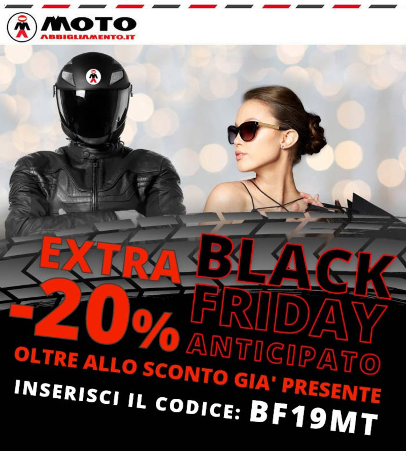 Motoabbigliamento.it anticipa il Black Friday: per gli utenti di Moto.it il codice sconto è già attivo.