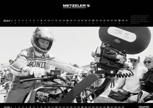 Nel 1980 esce nelle sale cinematografiche l’opera di Peter Starr “Take It to the Limit” e lo scatto dei mesi di maggio e giugno è dedicato a Randy Mamola ritratto a Laguna Seca durante la Spark Plug 200 Classic in sella alla sua moto sul cui cupolino è montata una cinepresa del peso di tredici chilogrammi necessaria per girare alcune scene del film.