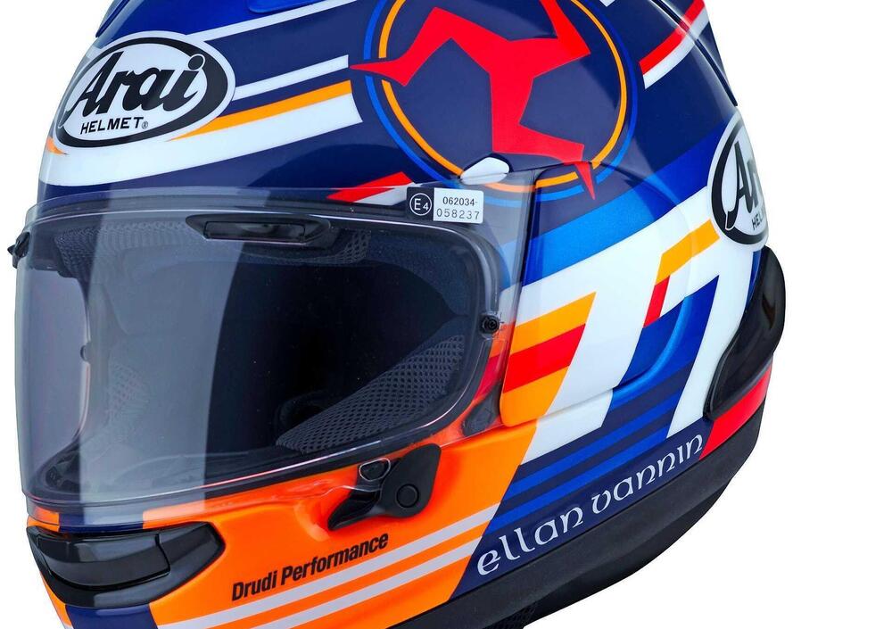 Il momento peraltro coincide con i 40 anni di coinvolgimento di Arai nel TT, dove la Casa giapponese ogni anno supporta tutti gli utenti Arai con assistenza e ricambi. RX-7V EVO Isle of Man TT Limited Edition vede il design di Aldo Drudi, collaboratore di lunga data di Arai, e si ispira alle nuove colorazioni della leggendaria gara, dove sono immancabile ed evocativi il Triscele e il testo "Ellan Vannin" (Isola di Man in Manx). Fatta salva la strepitosa livrea, il casco è in tutto e per tutto un RX-7V EVO 2024.