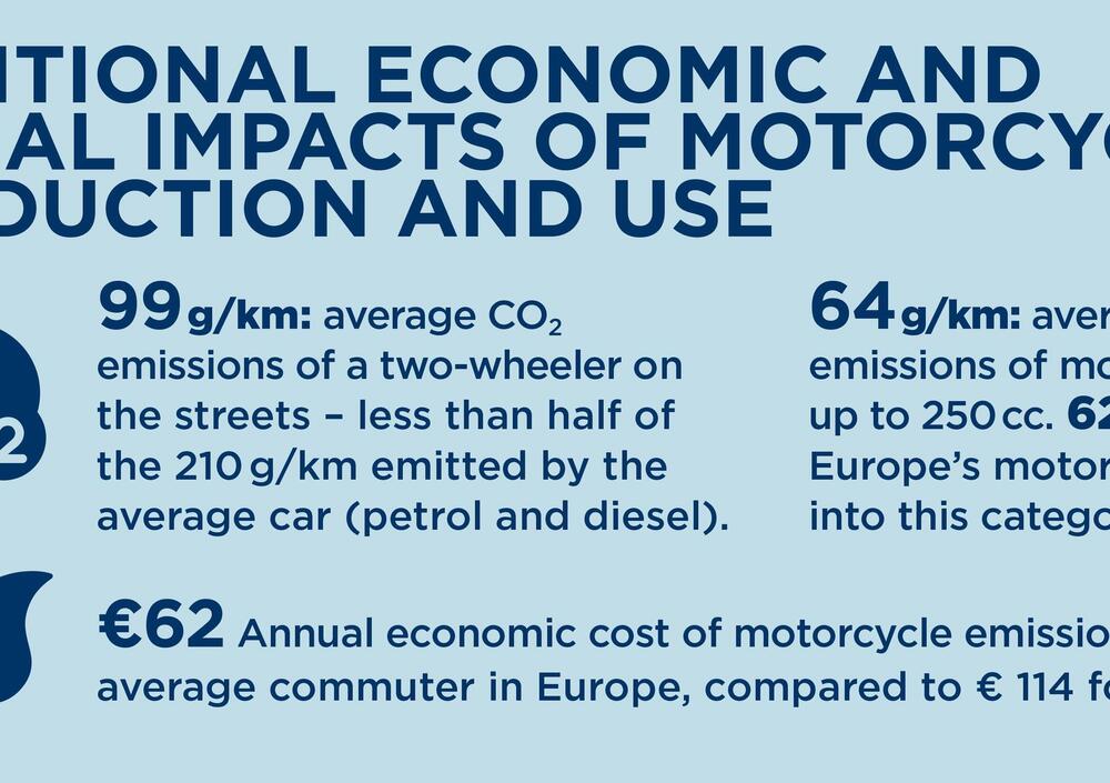 C'è da osservare che le moto/scooter fino a 250 cc emettono in media 62 grammi CO2/km e che circa il 62% delle due ruote europee rientra in questa categoria.